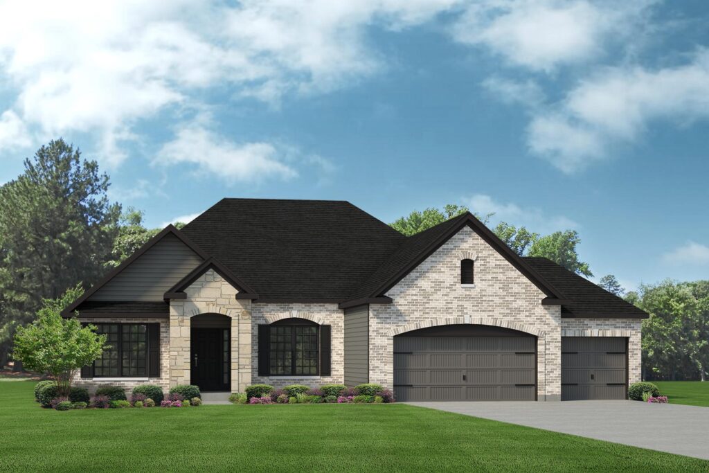 The Serengeti is a 1.5-story home with 3 bedrooms, 2.5 bathrooms, and more than 2,800 sq. ft. of living space. The first floor showcases a dining room off the foyer, great room that opens to the kitchen and nook, family entry with a walk-in closet and laundry room, primary suite with a full private bath and walk-in closet, and a three-car garage. The second floor features a loft, and two secondary bedrooms with walk-in closets.