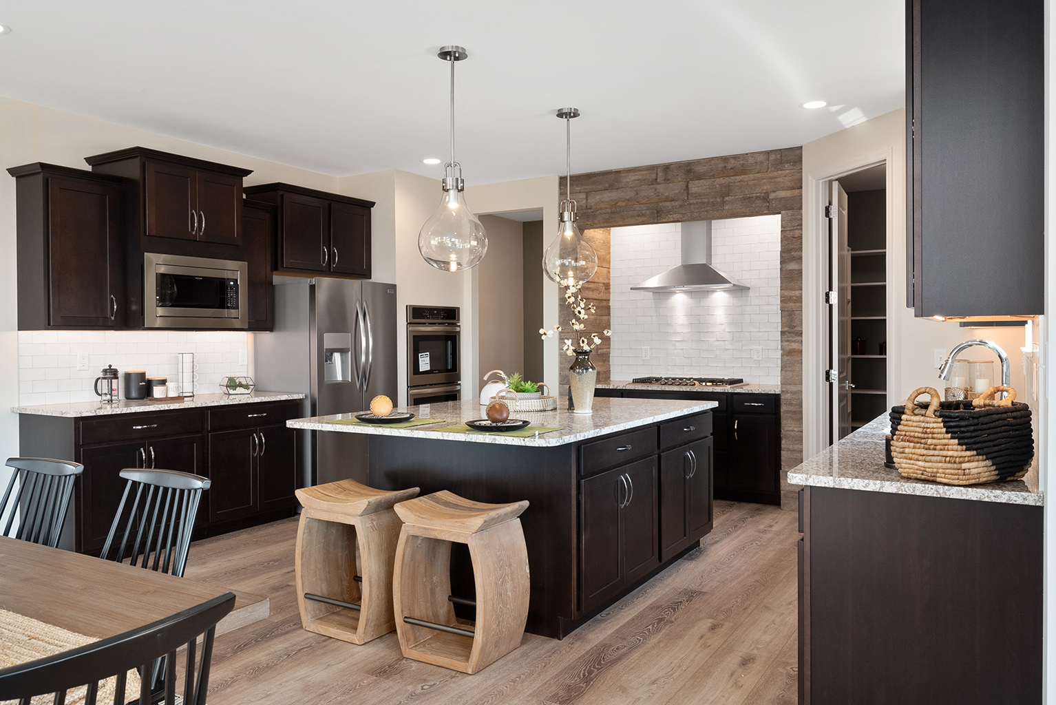 The Rybrook is a two-story home featuring 3 bedrooms, 2.5 bathrooms, and more than 2,100 sq. ft. of living space. Thoughtfully designed to maximize space, the Rybrook showcases a large study off the foyer, a laundry room, and powder room on the first floor. The open-concept kitchen, eat-in nook, and great room round out the first floor. The upstairs features the primary suite with two walk-in closets, a private full bath, two secondary bedrooms, a second full bath, a loft, and generously sized walk-in closets.