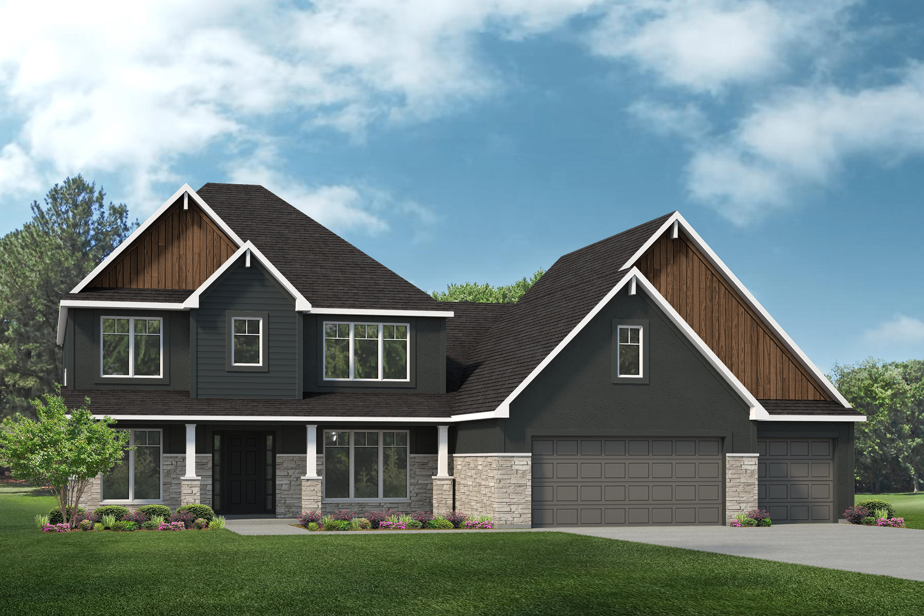 The Harbor is a two-story home with 4 bedrooms, 2.5 bathrooms, and more than 3,300 sq. ft. of living space. The main floor features a dining room off the foyer, great room that opens to the kitchen and nook, family entry to the laundry room, primary suite with a private full bath and walk-in closet, and a three-car garage. Three secondary bedrooms share the main bath on the second floor. Looking for a new home in the greater Columbia area? Contact our sales team to learn more about the Harbor! We can’t wait to meet with you and discuss building your dream home with Lombardo Homes!