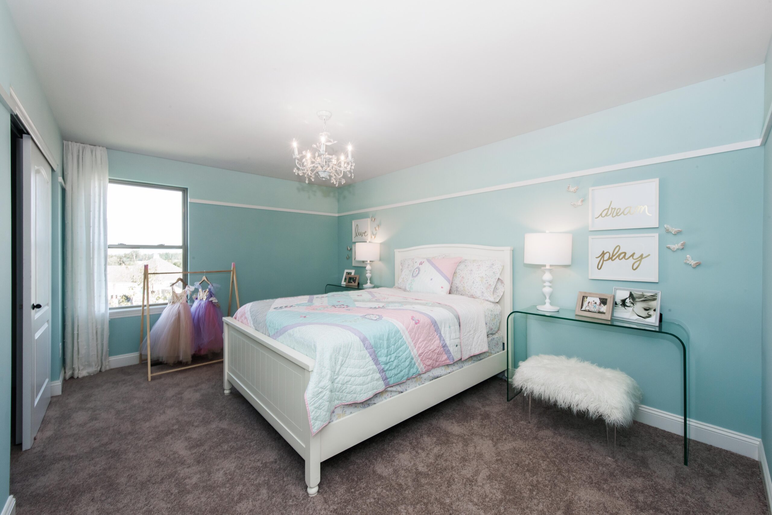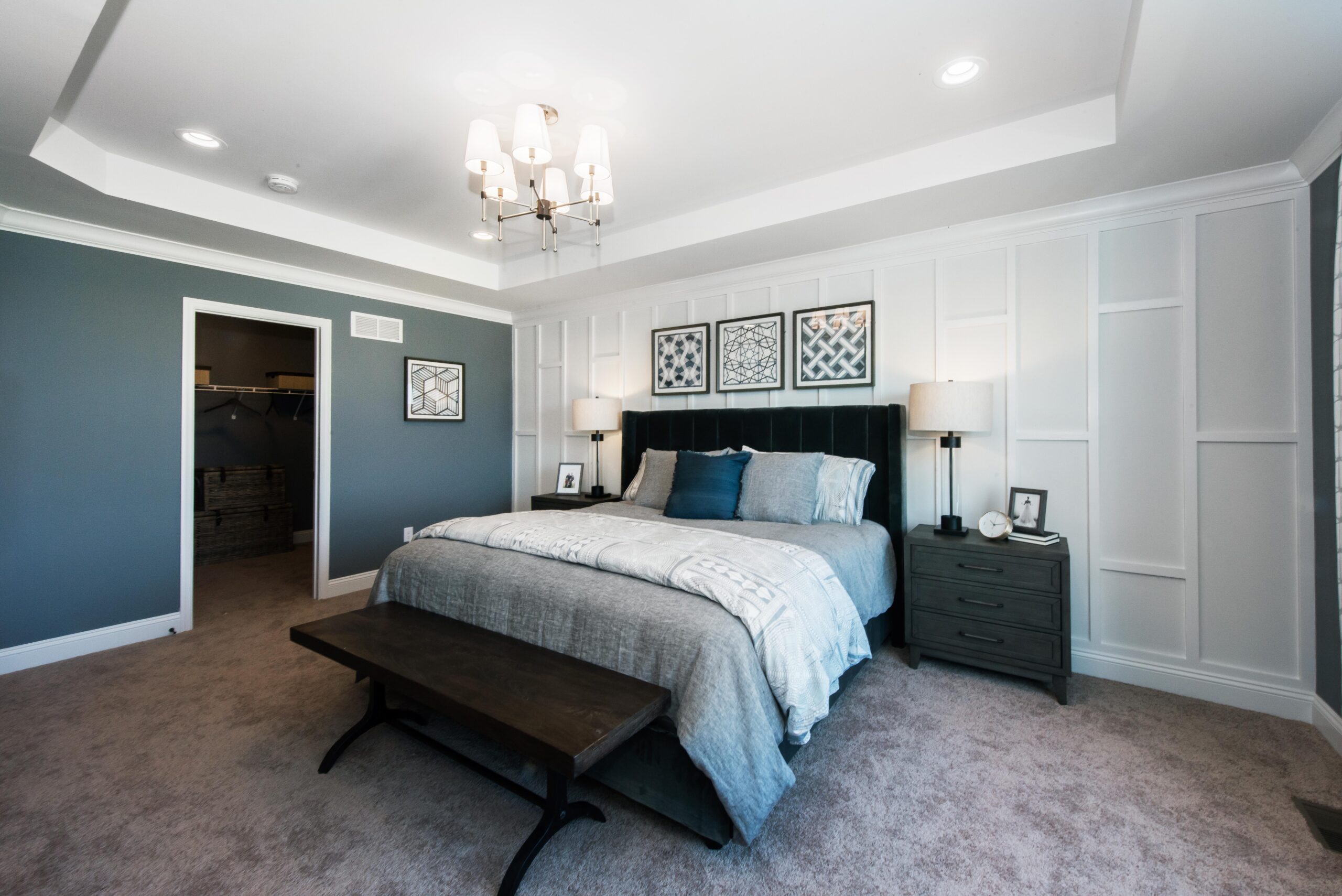 The Lakeland is a two-story home with 3 bedrooms, 2.5 bathrooms, and more than 2,600 sq. ft. of living space. The first floor showcases a study off the foyer, great room that opens to the kitchen and nook, a family entry with a walk-in closet, and a three-car garage. The second floor features a laundry room, loft, primary suite with a private full bath and two walk-in closets, and two secondary bedrooms with walk-in closets.