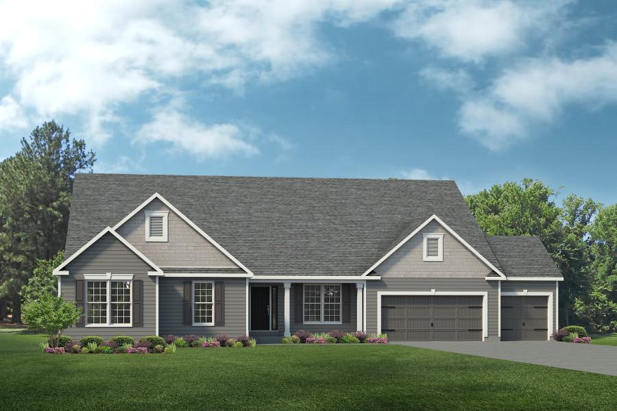 The Redwood II is a ranch home with 3 bedrooms, 2.5 bathrooms, and more than 3,000 sq. ft. of living space. Interior features include a family entry off the garage that opens into the kitchen and leads to the laundry room. Off the foyer is a formal dining room and hallway leading to a study and two secondary bedrooms that share a bathroom. The spacious great room has a sightline from the kitchen. The rest of the home is comprised of the master suite with a private full bath and walk-in closet and a three-car garage.